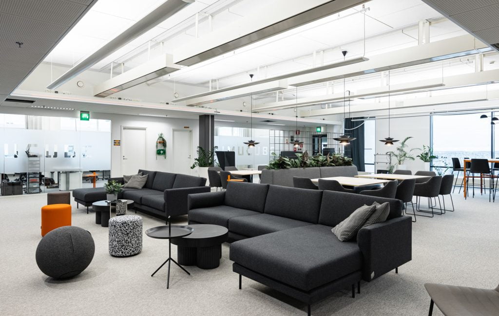 Ohjelmistoyritys Simucuben toimisto suunniteltiin voimakkaaksi ja dynaamiseksi kokonaisuudeksi, jossa yrityksen valmistamat ajosimulaattorit pääsivät paraatipaikalle. Tumma sävymaailma yhdistettynä ylimmän kerroksen maalauksellisiin maisemiin saavat aikaan vaikuttavan tunnelman, jossa brändiväri oranssi näkyy pienissä harkituissa yksityiskohdissa.